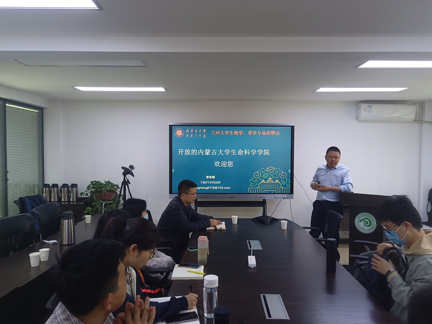 为贯彻落实学校干部大会精神,深入推进“人才强校”战略,加强高端人才引进力度,进一步加快生物学一流学科建设,2023年4月22日,太阳成集团tyc122cc副院长李东明带队赴兰州大学太阳成集团tyc122cc、草地农业科技学院组织专场招聘宣讲会,现场精准引才,同时到兰州大学萃英学院就基础学科拔尖学生培养体系进行了深入的学习和交流。