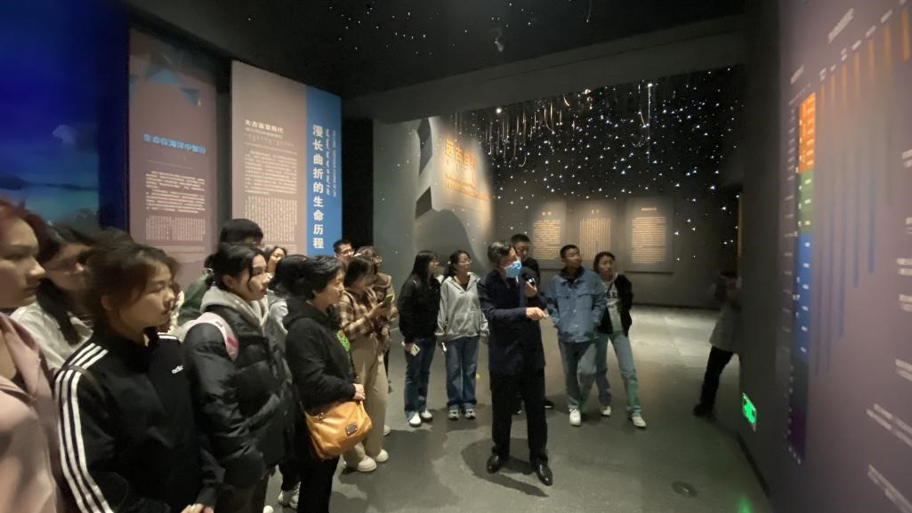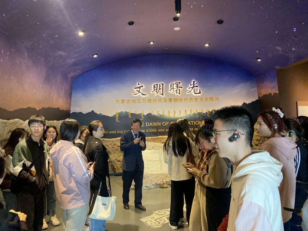 内蒙古博物院展示了内蒙古悠久的历史和文化,文物述说着秦汉以来内蒙古的“交融汇聚”以及近现代的“和合共生”。赵老师也和师生们分享了1996年首次参加中国-比利时联合考察发掘项目背后的故事,以及自己讲解生涯由书本到实践的融汇过程。讲解过程中,赵老师多次讲述了在学习和生活中“发现”的美与乐趣,并鼓励学生树立理想,培养一双善于发现、勇于发现并富有感情的眼睛。
