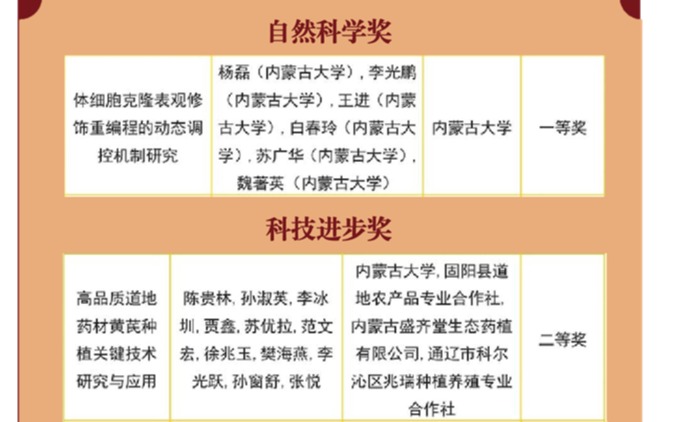 近日,自治区人民政府发布了《关于2022年度自治区科学技术奖励的决定》(内政发〔2023〕16号),我集团共有5项成果获奖,取得了新突破。其中我集团教师牵头完成的2项成果分别获自然科学一等奖和科技进步二等奖,另有与其他单位合作完成的3项成果获得科技进步奖,包括特等奖1项,二等奖2项。杨磊研究员牵头完成的“体细胞克隆表观修饰重编程的动态调控机制研究”获得自然科学一等奖,占全区自然科学一等奖授奖总数的50%,主要完成人...